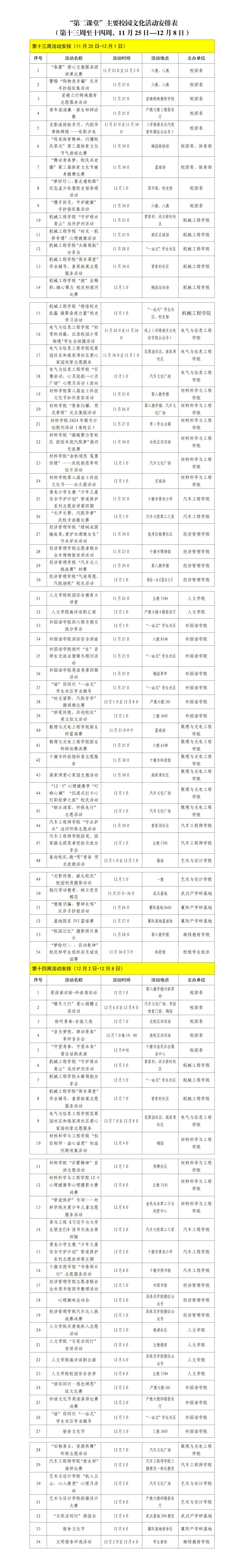 “第二课堂”校园文化活动安排表(第十三周至十四周)