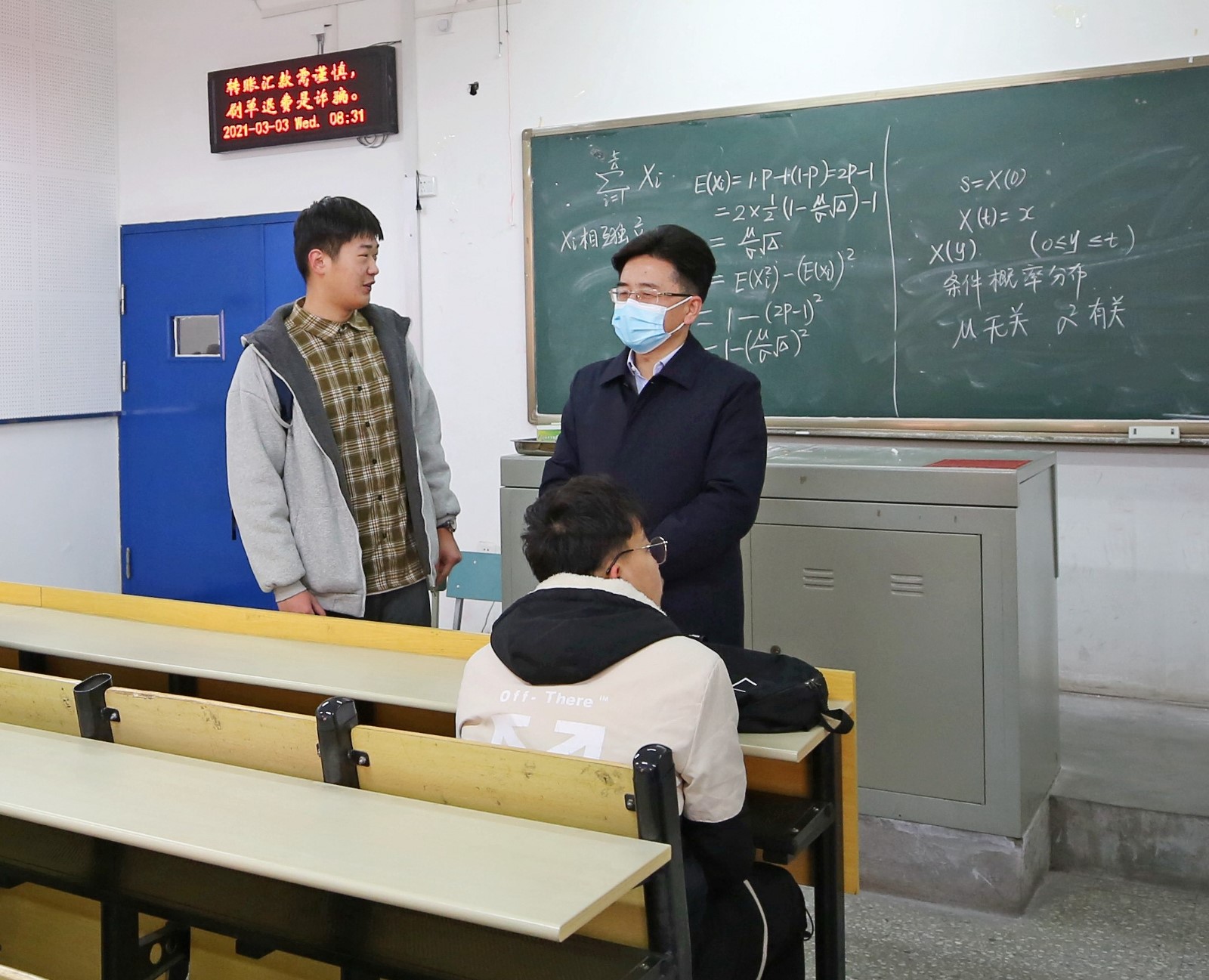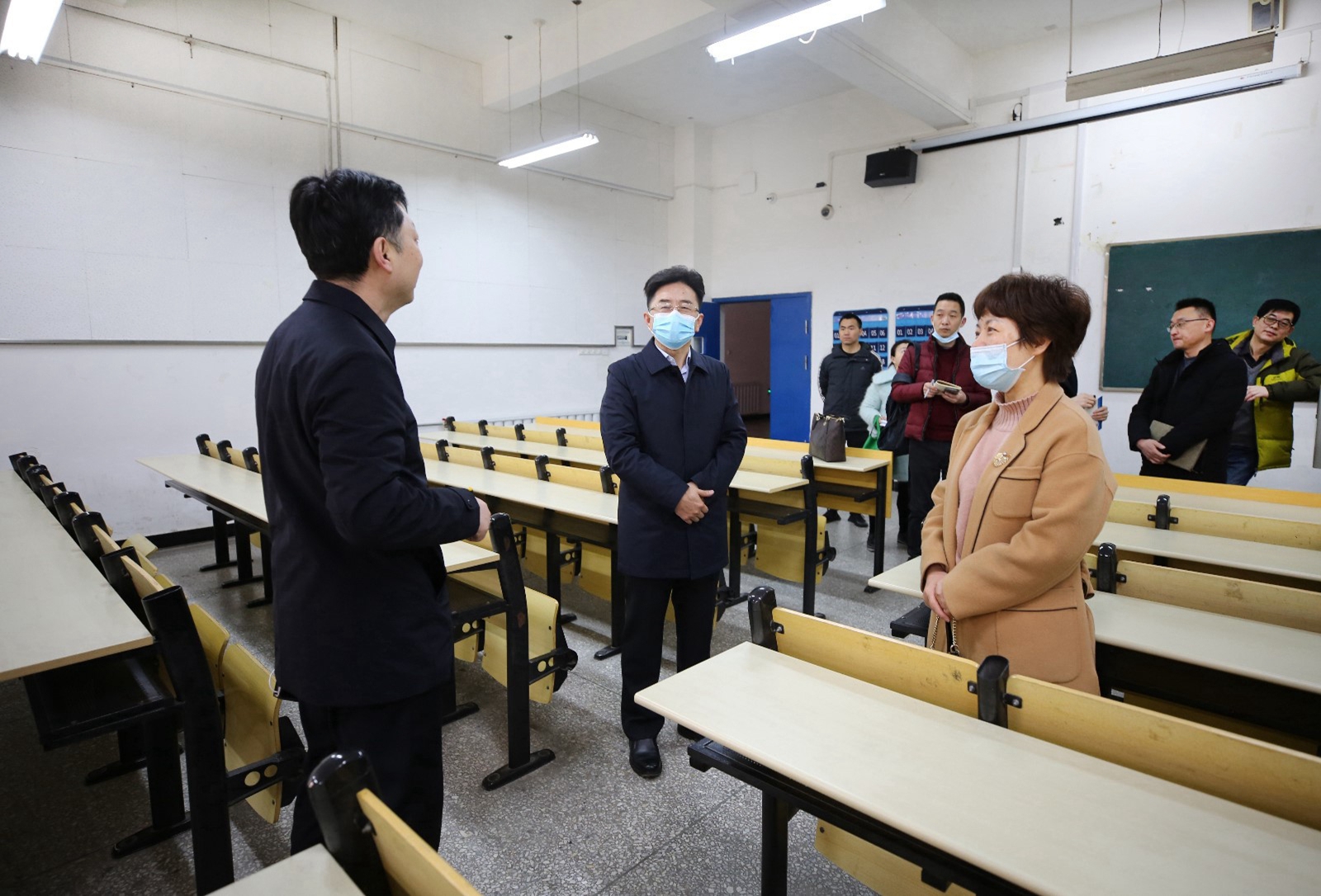本网讯(文 姚雪/图 广娟)3月3日上午,校长张文学和学校办公室、教务处、学工部、校园建设和管理处等职能部门负责人来到第六教学楼检查新学期教学工作开展和教学条件保障情况。