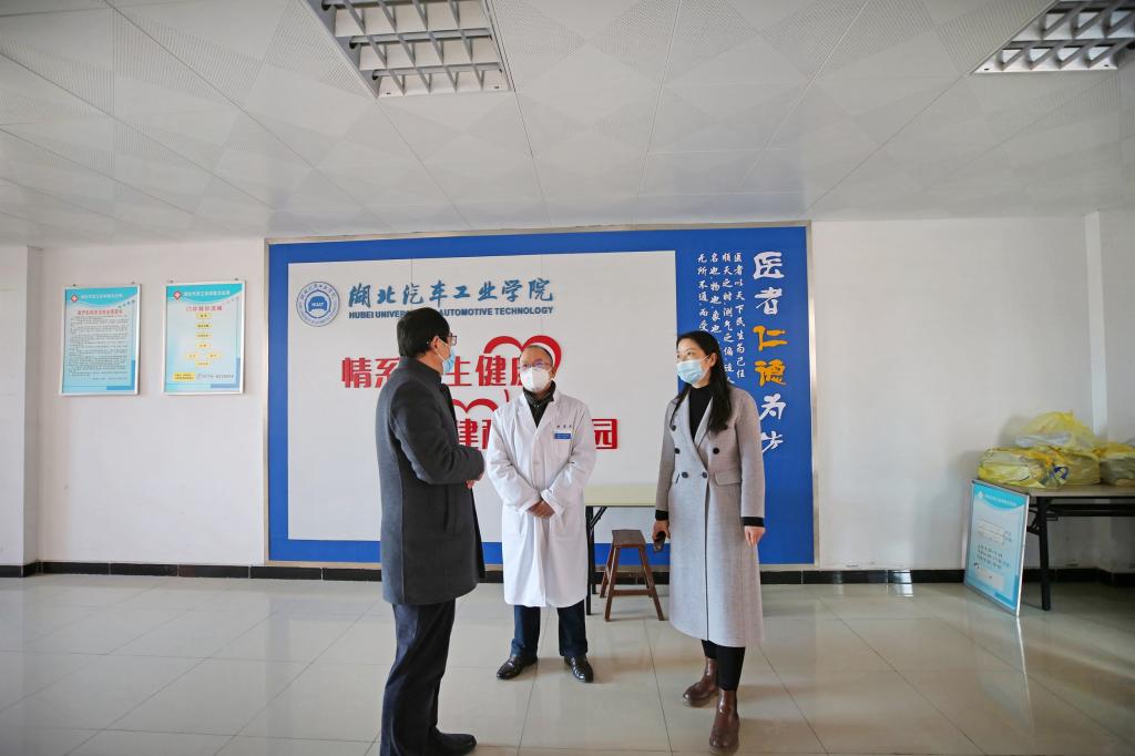 本网讯(文 朱志斌/图 广娟)3月4日上午,十堰市常态化疫情防控指挥部督导组组长、市卫生健康委党组书记曹博、成员徐建河、韩亚飞及十堰市教育局二级调研员庹明国、体卫艺科科长邓滨一行莅临beat365调研指导疫情防控工作。学校党委副书记杨立志、党办(校办)副主任郭义坤陪同调研。