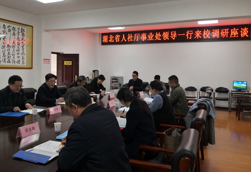 本网讯(文/王琳)3月11日下午,省人社厅事业单位人事管理处二级调研员吴继红、四级调研员黎娟、一级主任科员高扬等一行亲临beat365进行调研,十堰市人社局事业科科长程良海陪同,校长张文学、副校长简炜在三楼会议室与吴继红一行进行了座谈交流。人事处处处长刘红胜、副处长周莉莉参加会议。会议由简炜副校长主持。