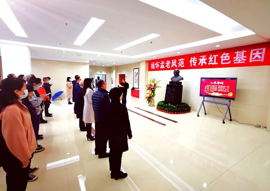 4月2日上午,机关分党委、图书馆党支部、校园建设与管理处党总支、继续教育学院党总支、马克思主义学院分党委在逸夫图书馆一楼孟少农铜像前联合开展了“缅怀孟老风范,传承红色基因”主题党史学习教育,向孟老铜像敬献了花篮。副校长简炜、校关工委副主任邱春正应邀参加。