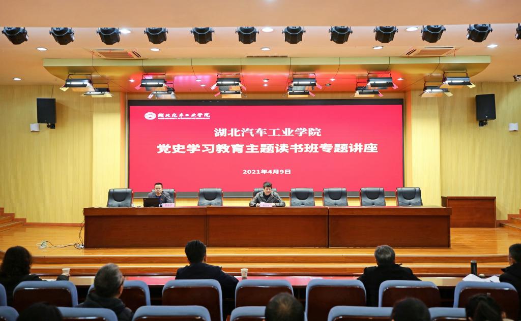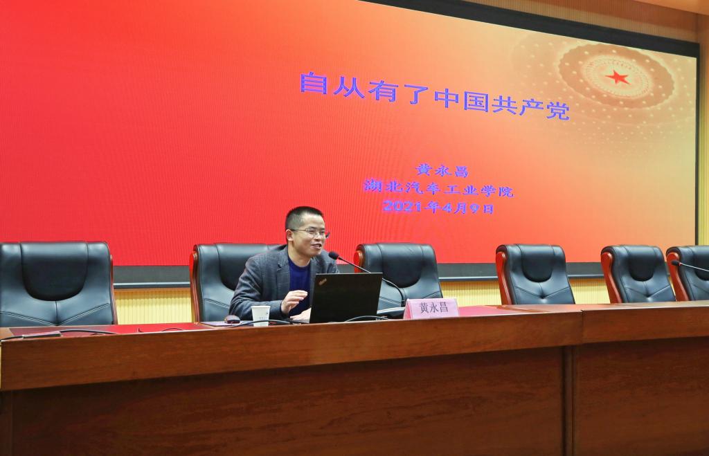 本网讯(文 杜鹏/图 广娟)4月9日上午,学校党史学习教育主题读书班专题辅导讲座第二讲暨明德论坛第三十九讲在逸夫报告厅开讲。十堰市委宣讲团成员、beat365马克思主义学院副院长黄永昌副教授应邀作了“自从有了中国共产党”主题讲座。党委书记程红兵主持讲座,学校副处级及以上干部、党支部书记聆听了讲座。