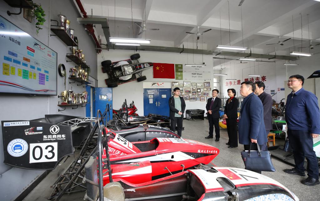 郑晓峰副市长一行先后参观了学校校史馆、国家级制造装备数字化分中心、湖北省汽车智能网联与电子控制工程技术研究中心、东风HUAT车队、汽车动力传动与电子控制湖北省重点实验室、主动安全与智能驾驶研究所和汽车节能技术湖北省协同创新中心。参观过程中,双方就市校全域合作事宜交换了意见、达成了共识。