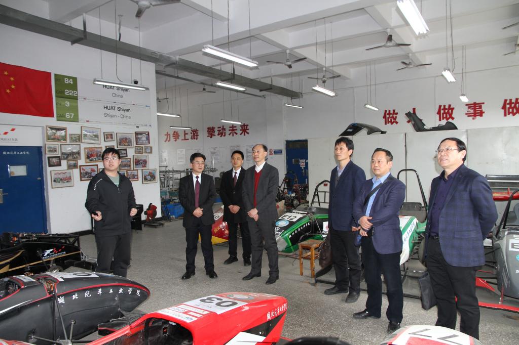 在张文学、杨立志的陪同下,喻发全一行参观了校史馆、HUAT车队、主动安全与智能驾驶研究所。