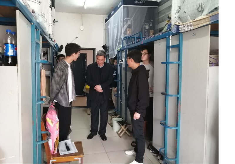 在走访中,杨书记每到一间宿舍,都会与同学们亲切交谈,听取学生心声,针对同学们学业中存在的问题和疑惑进行指导。他鼓励同学们要明确目标,志存高远,继续发扬老一辈的艰苦奋斗、自强不息精神,坚定理想信念、锐意开拓进取,以实际行动向党的100周年献礼。