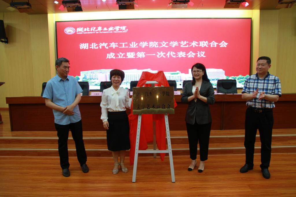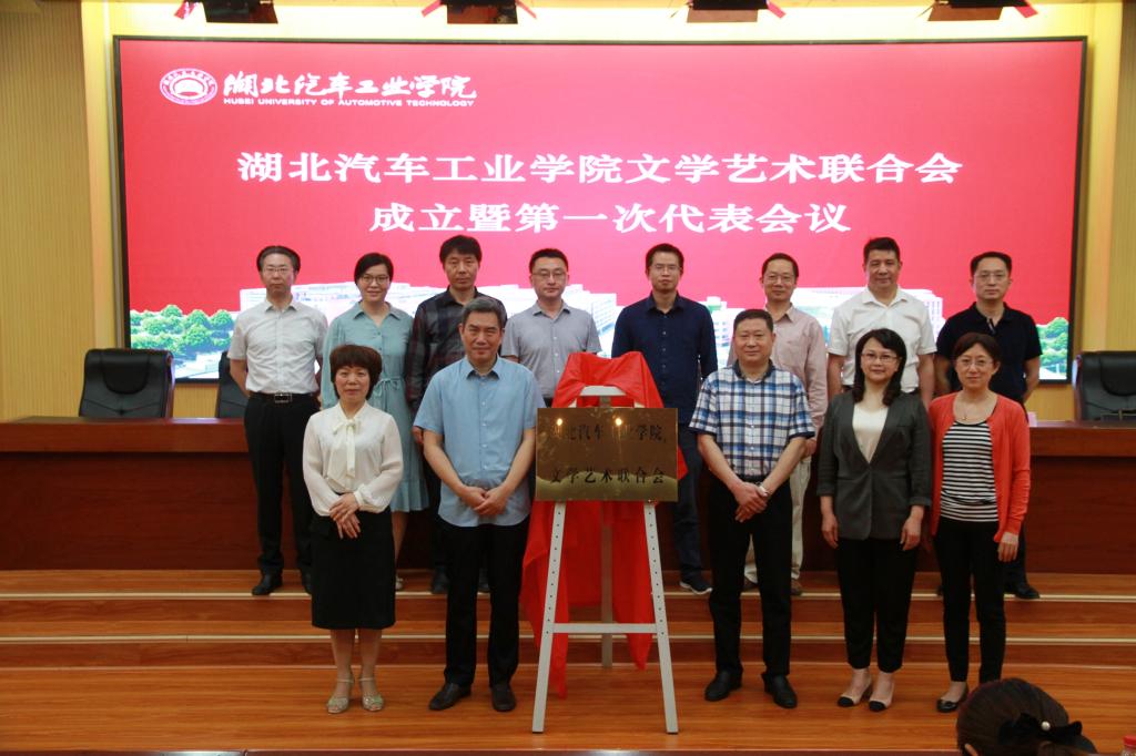 最后,十堰市委宣传部领导、市文联领导、学校领导、学校文联领导集体上台,为“beat365在线唯一官网文联”揭牌并合影。