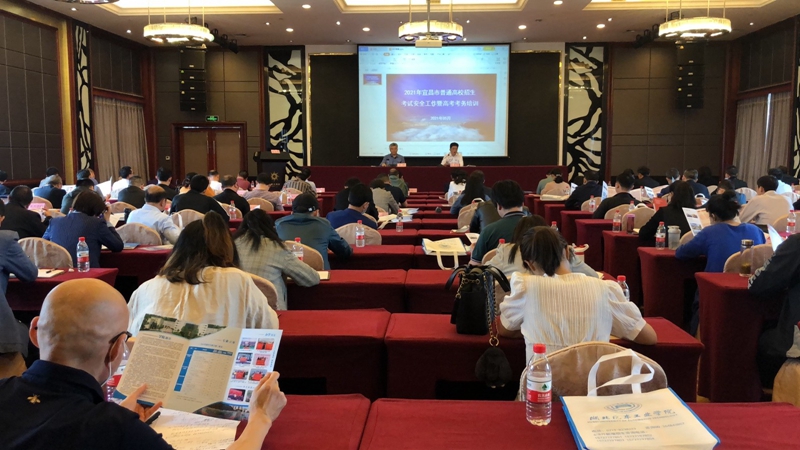 在张文学校长的亲自协调下,学院提前与宜昌市教育局教育招生和考试办公室对接,5月17日提前入住宜昌地区高考考务培训会现场,在协助会务组织的同时将学校宣传资料和宣传品摆放到位,确保参会的各县市区教育局分管副局长、招考办主任、考点学校主考、副主考、非考点学校校长、教务主任等110余老师人手一份。