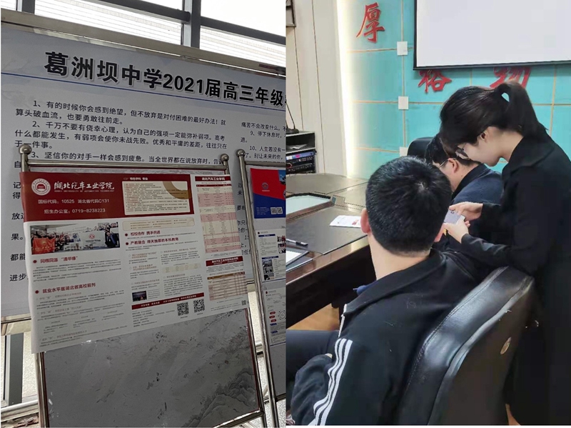 18日下午-21日,招就处李新伟、建管处杜时亚、车院李秀峰、杜昕俊、韩同群、袁显举、章菊、科技学院李正桥、巩磊、常金星等分成三个组分别走访了宜昌小溪塔高中、东湖高中、宜都二中、长阳二中、枝江一中、枝江二中、远安一中、兴山一中等高中学校,并对宜昌小溪塔高中进行了优秀生源基地授牌。