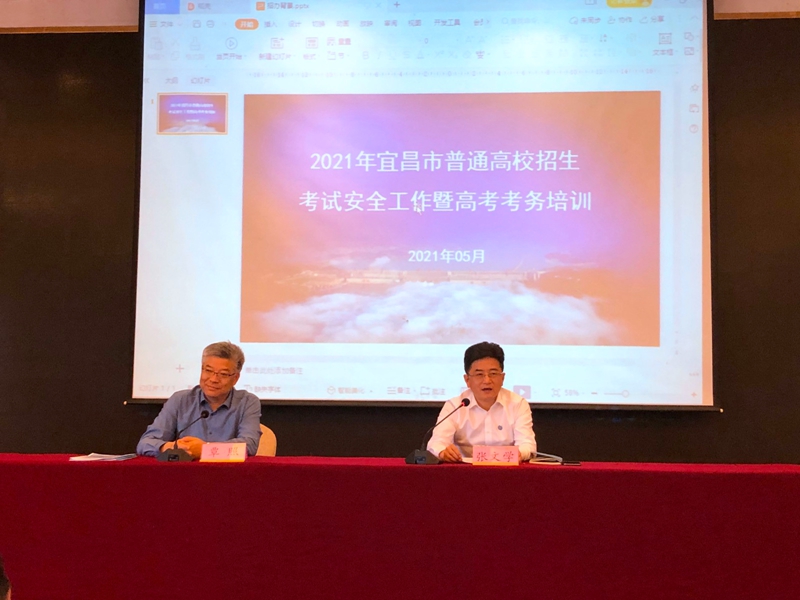 17日下午张文学校长与宜昌市教育局覃照局长、招考办温敬东主任、李群副主任等进行了初步交流。5月18日上午,在覃照局长的主持下,张文学校长在宜昌市2021年普通高校招生考试安全工作暨高考考务培训会上以专题方式从三个方面对学校进行集中宣讲推介:一是介绍了学校办学历史、发展情况及志愿填报政策;二是分析了beat365近三年在宜昌地区的录取情况及毕业生在宜昌地区工作或读研情况;三是学校与宜昌地区各高中的合作愿景,包括“加强合作、建立联系”,“大学前置、做好服务”,“鼓励报考、互惠互利”等。