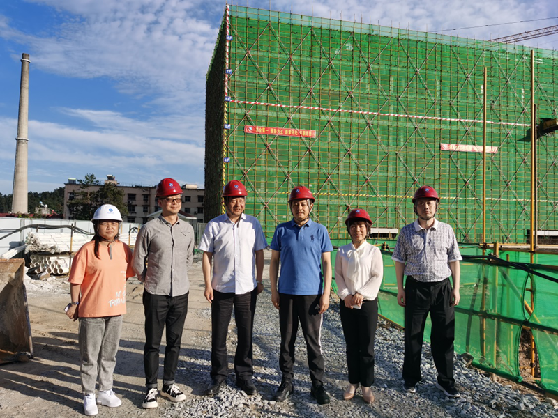 会后,牟发兵一行在学校领导和相关部门负责人陪同下调研了正在如火如荼建设的汽车产业实验实训教学示范中心大楼项目现场。