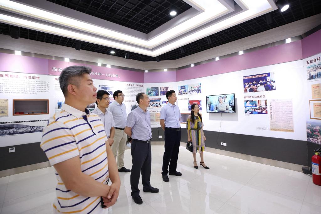 在学校相关人员的陪同下,周明星一行参观了学校校史馆、国家级制造装备数字化分中心、东风HUAT车队、机器人实验室及精密测量实验室。