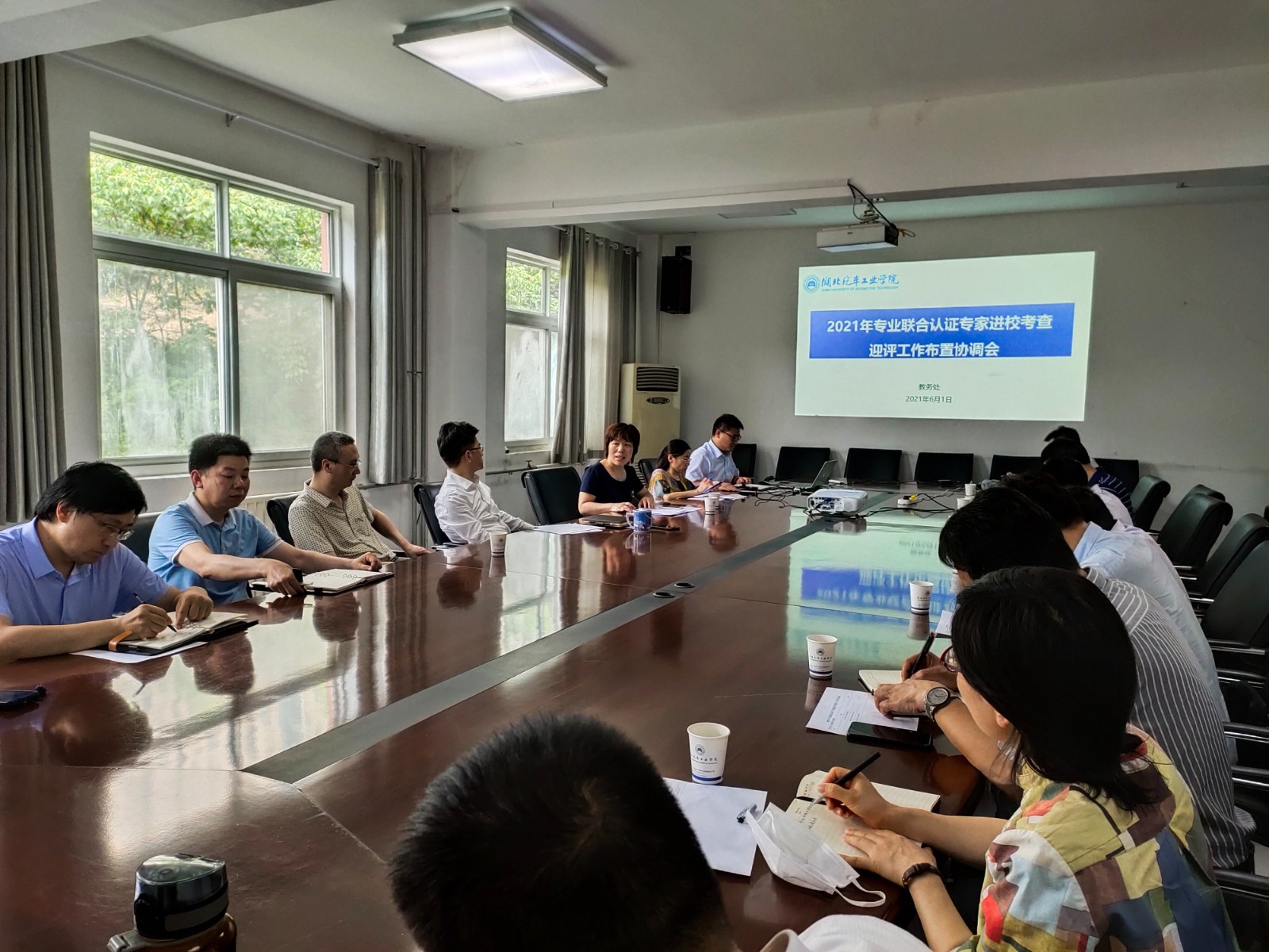 本网讯(文/潘佳欣)6月1日下午,学校在行政楼六楼会议室组织召开了2021年专业联合认证专家进校考查迎评工作布置协调会,学校办公室(党办、校办)、宣传部、学生工作部(团委)等职能部门负责人、认证学院领导班子、相关二级学院(部)教学副院长(副主任)及工作人员参加会议。会议由副校长张红霞主持,校长张文学出席会议。