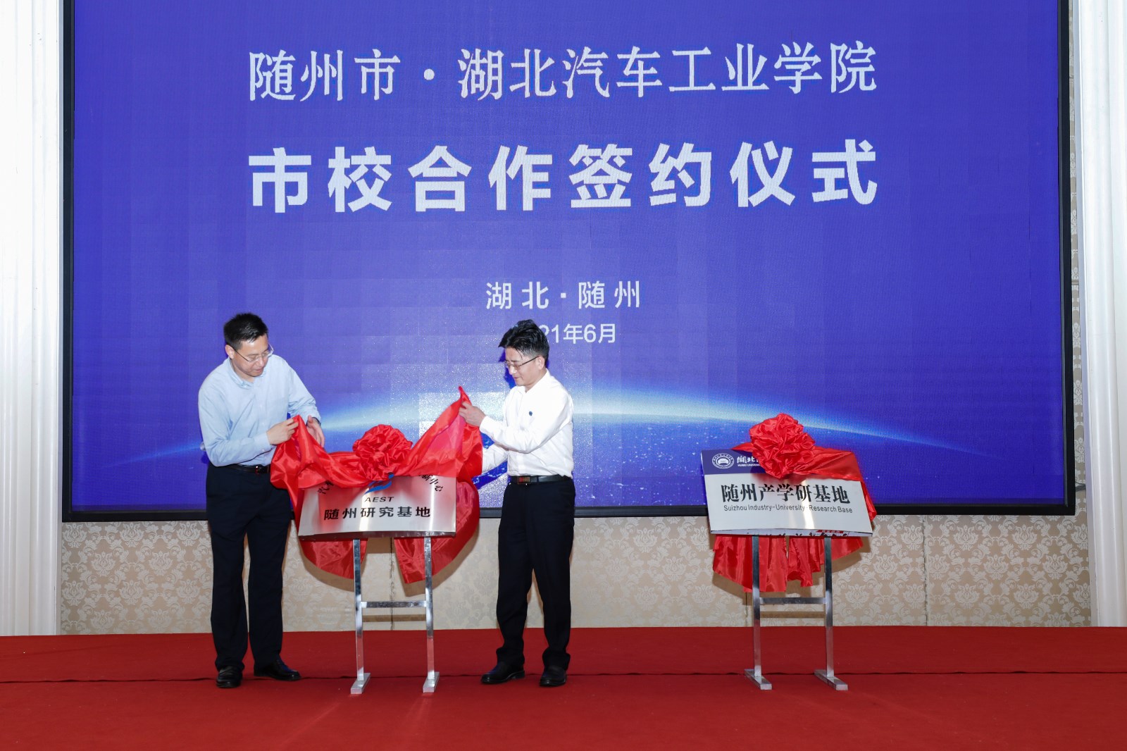 张文学和克克为“beat365在线唯一官网随州产学研基地”和“汽车节能技术湖北省协同创新中心随州研究基地”揭牌。