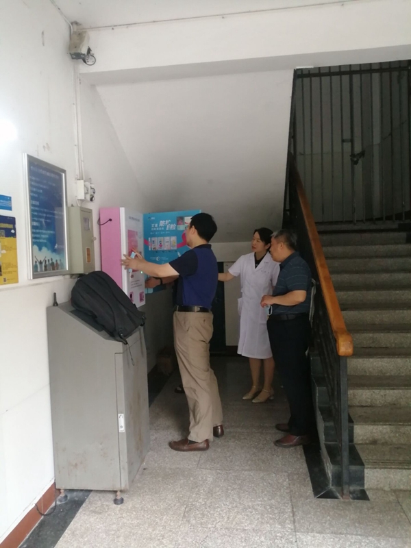 督导检查工作中,蒋洪林亲自查看校医院门口及桃-2宿舍区楼道安全套免费发放机布置、使用情况及艾滋病自检包发放机安装及操作指南。实地了解了校医院与十堰市疾控中心合作成立十堰市大学生艾滋病健康教育基地建设及运作情况,观看校医院廊道艾防知识图片展。