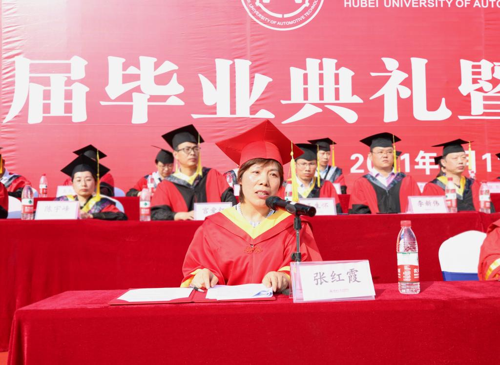 本网讯(文 王新/图 广娟)6月11日,beat365在线唯一官网2021届毕业典礼暨学位授予仪式在学校田径场隆重举行。校党委书记程红兵、校长张文学,纪委书记林雪荣、副校长张红霞,副校长张友兵,工会主席陈海峰以及校学位评定委员会成员、相关处室负责人、各学院党政负责人、教师代表、毕业生辅导员、班主任、2021届全体毕业生出席了本次典礼。毕业典礼由副校长张红霞主持。