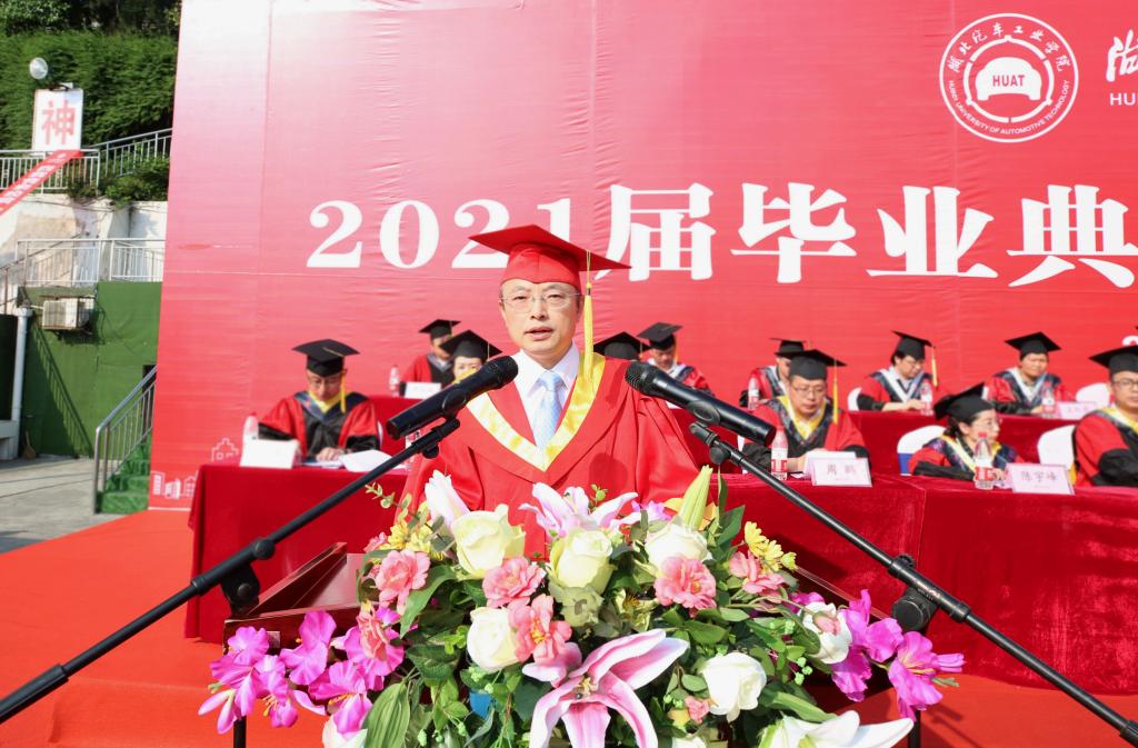 张文学校长在2021年本科生毕业典礼上发表了感人至深的讲话。“士不可不弘毅,任重而道远”。新时代的汽院青年,希望你们直面生活新挑战,敢于逆流再前进,坚信“奋斗的青春最美丽”,将“小我”融入社会“大我”,永远眼中有光、胸中有志、腹中有才、心中有爱,在实现中国梦不懈奋斗和生动实践中释放青春激情,放飞青春梦想。“苟日新,日日新,又日新。”创新是当今时代发展的主旋律。时代呼唤创新,青年渴望创新。愿你们保持敢为人先的锐气,砥砺逢山开路、遇河架桥的意志,勇于解放思想、与时俱进,敢于上下求索、开拓创新,用点点滴滴的创造和努力,汇聚成开创时代新貌的奔涌河流。“非才无以为贵,非学无以广才”。今天你们即将走出校门,作为校长,我依然要说“把学习作为第一要务、第一责任、第一追求”。你们要坚持“无一时而不学,无一事而不学”的勤奋积累,把学习作为陪伴终身的修炼,在学习中增长知识、锤炼品格,在工作中增长才干、练就本领,让勤奋学习成为青春远航的动力,让增长本领成为青春搏击的能量。他希望毕业生们在人生之路上,立青春之志气,勇赴时代之约;展青春之锐气,答好时代之题;聚青春之才气,奏响时代之音。在前进的路上,母校会永远关注着你们,汽车学院永远是你们的精神家园和坚强后盾。