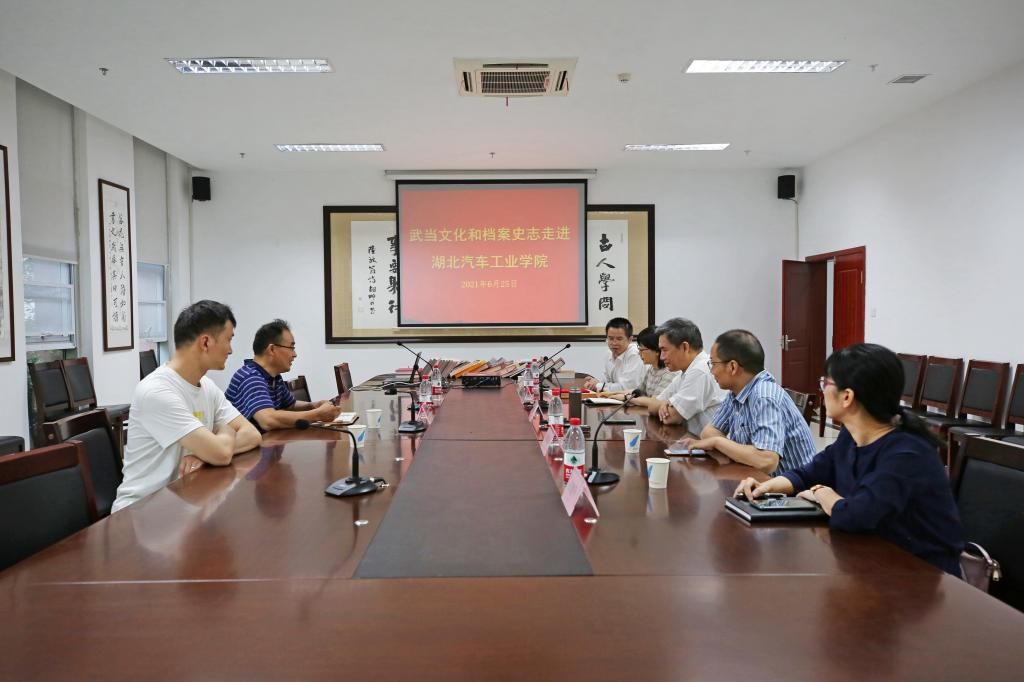 本网讯(文 黄永昌/图 广娟)6月25日上午,武当山特区档案馆(史志研究中心)馆长范学锋、办公室主任吴洁一行来校开展武当文化和档案史志文化“六进”活动,为beat365武当文化研究与传播中心和图书馆共捐赠《武当文化丛书》《武当山年鉴》等94本价值一万余元的武当文化和档案史志文化书籍。校党委副书记、武当文化研究与传播主任主任杨立志、马克思主义学院党总支书记杨高举、副院长成继平等参加捐赠仪式。捐赠仪式由马克思主义学院副院长(主持工作)黄永昌主持。
