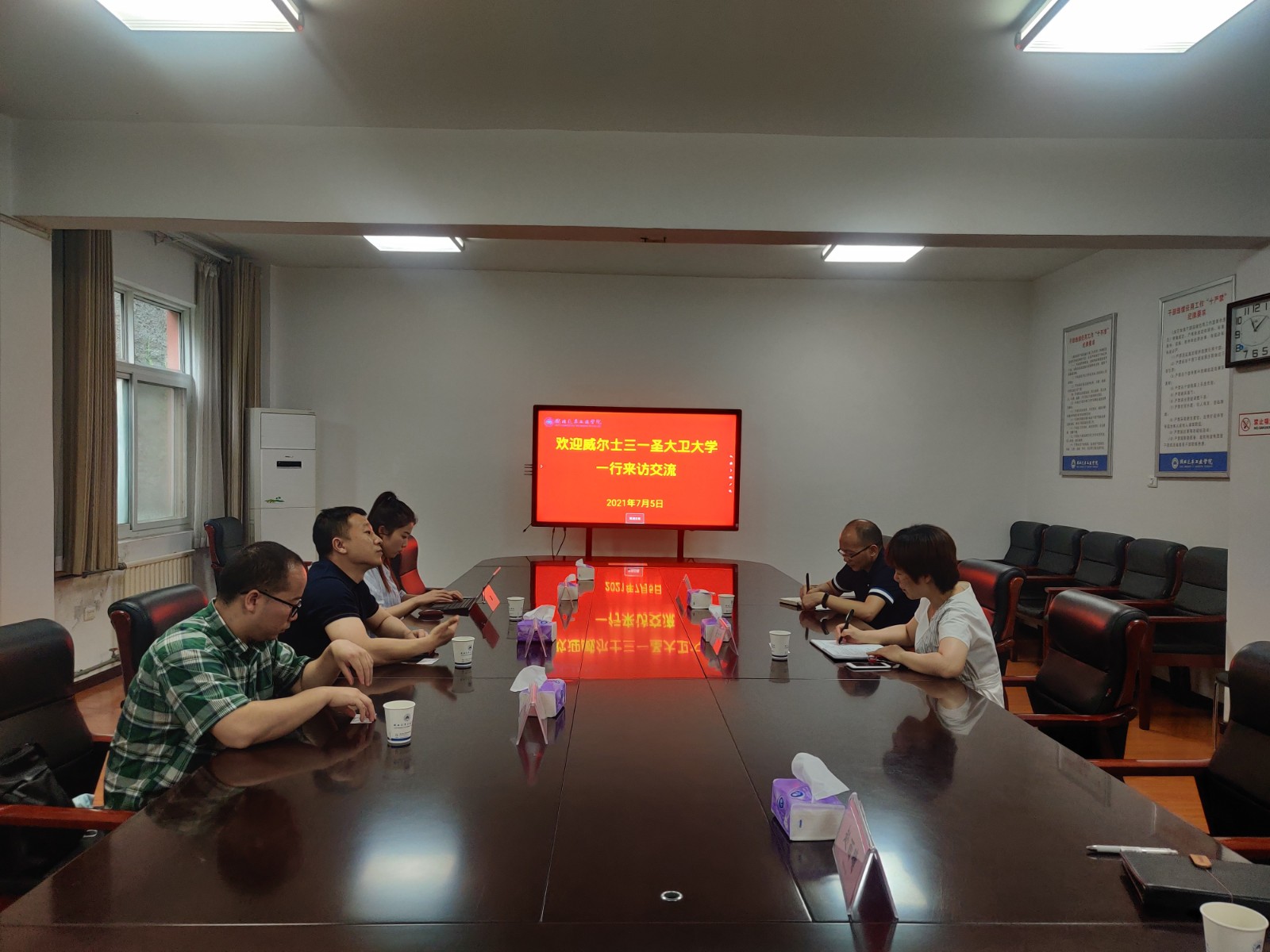 本网讯(文/赵雨晴)7月5日上午,英国威尔士三一圣大卫大学东亚办公室副主任陈志刚及项目主管胡安仪一行来beat365进行合作项目洽谈。副校长张红霞、国际合作交流处副处长苏子波参加了会议。