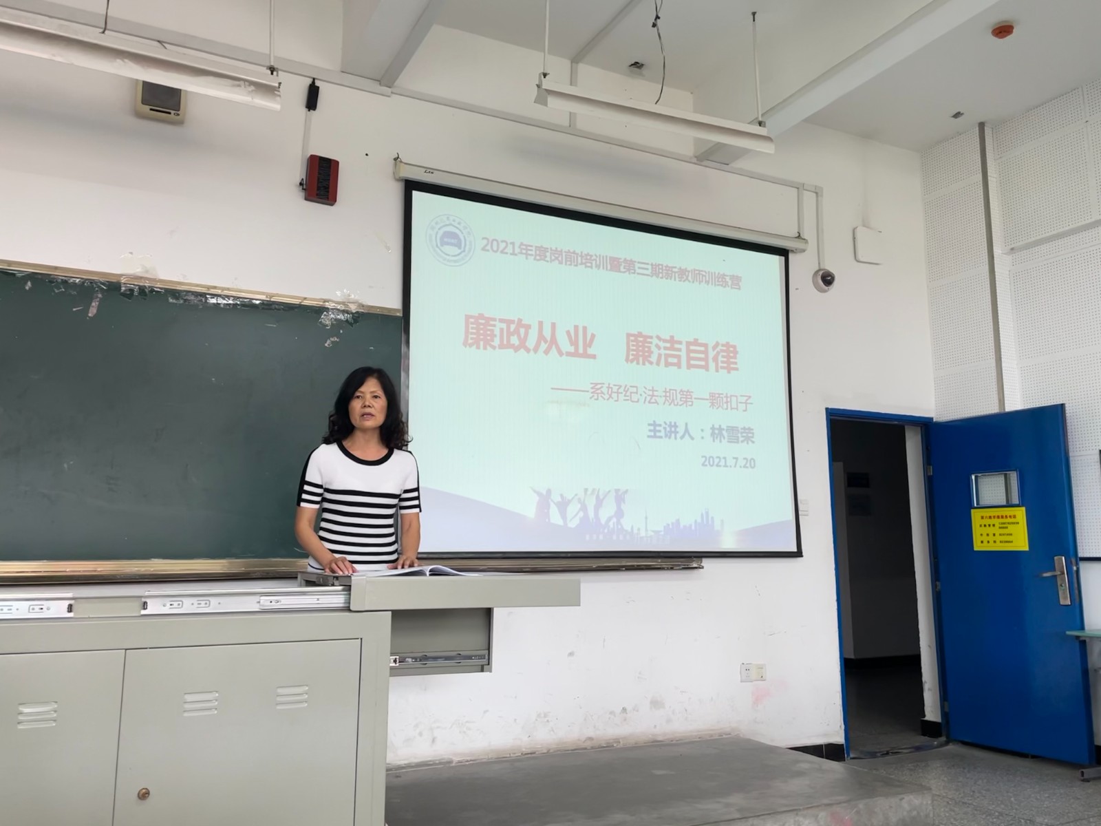 本网讯(文/段纪元)7月20日下午,校纪委书记、监察专员林雪荣以“廉政从业 廉洁自律—系好纪·法·规第一颗扣子”为题,为34名新入职干部职工讲授了一堂专题廉政党课。
