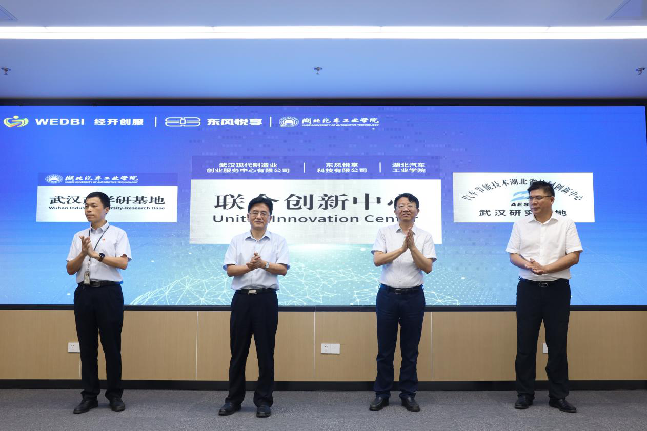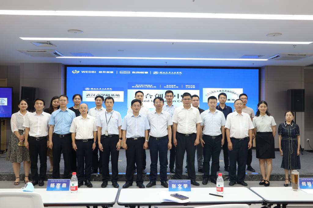 校长张文学、副校长张友兵、学校办公室主任王文山、武汉产学研基地主任郭都玺、副主任周恩德、协同创新中心常务副主任魏仁干、电气与信息工程学院院长陈宇峰、汽车工程师学院院长助理周奎等;武汉经开区组织部部长何裕生;东风技术中心副院长杨彦鼎;武汉经开投资公司董事长谢贵望、副总经理周浩明;东风悦享CEO李凯、COO周静;武汉经开创服总经理翟江岸、副总经理杨涛及相关政校企人员出席签约仪式。仪式由武汉经开创服江珊珊主持。