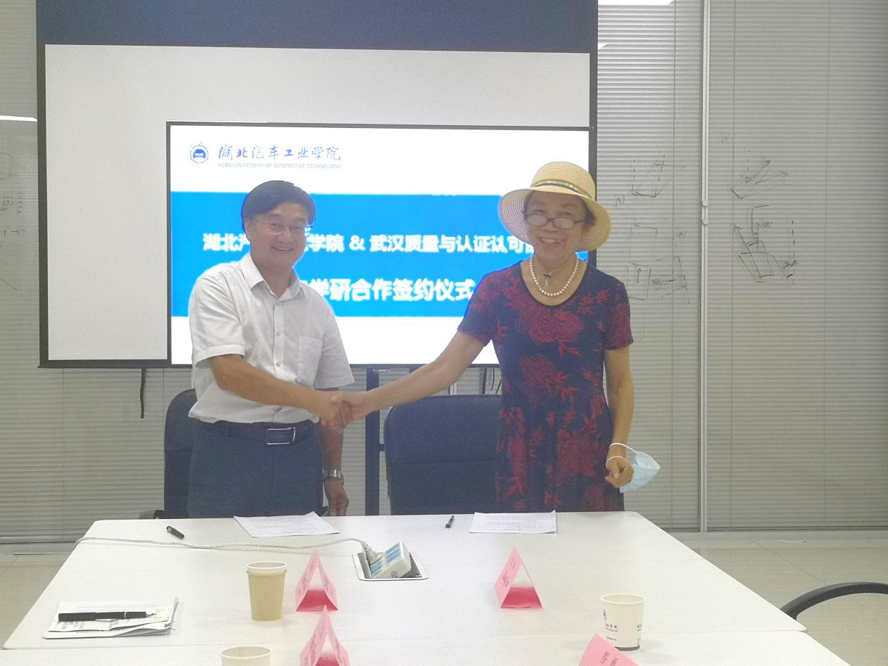 魏仁干代表学校与武汉质量与认证认可协会刘翠群签订战略合作框架协议。