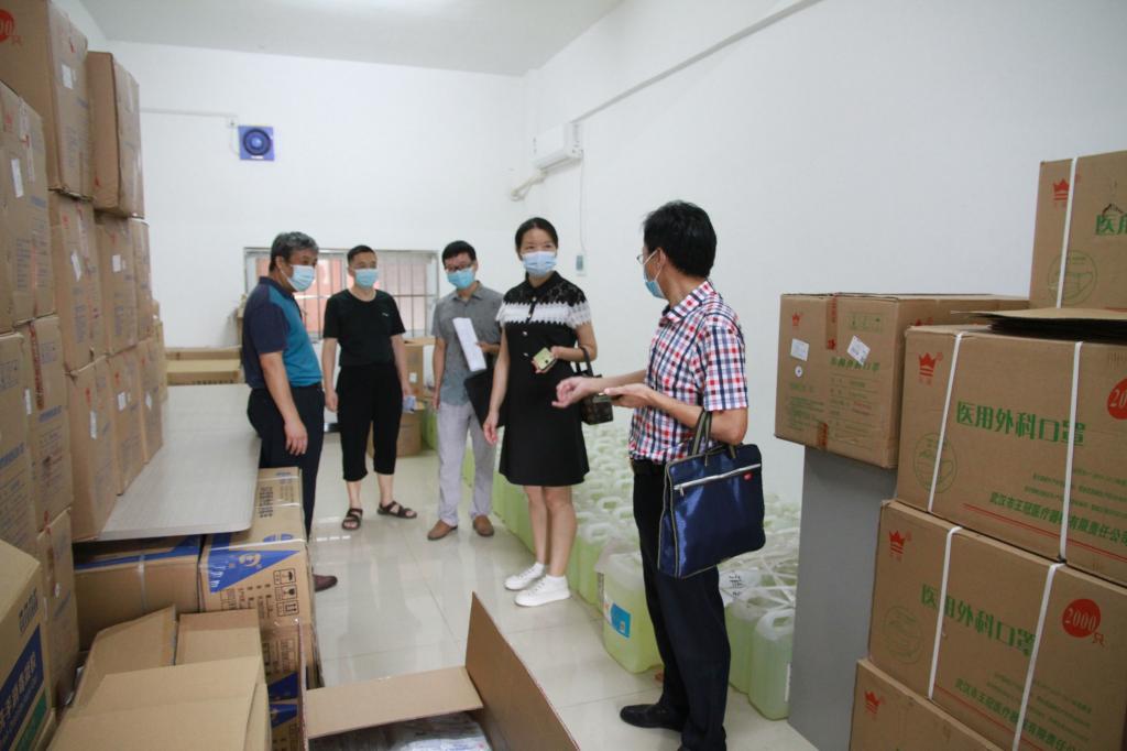 本网讯(文/图 邓玉洁)8月10日上午,市教育局职成教科科长易文涛、就业指导中心主任王锋莅临beat365开展常态化疫情防控督查工作。校办、保卫处、校园建设管理处、校医院等相关部门人员陪同检查。