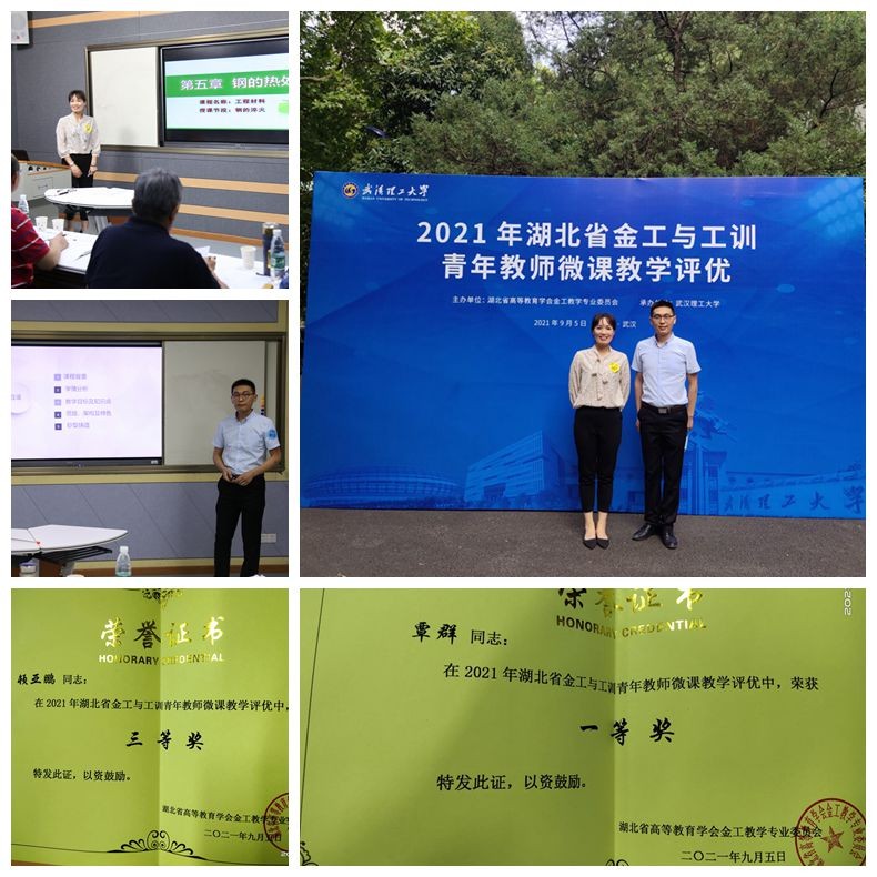 本网讯(文/顿亚鹏 刘峰)为了配合教育部新工科教学改革以及打造一批“金课”的精神,更好地应对新形势下的工程实践教学和课程建设的新要求和新挑战,研究和交流新形势下的《工程材料与机械制造基础》系列课程和工程训练课程的教学方法,促进青年教师的快速成长,打造《工程材料与机械制造基础》系列课程和工程训练课程的“金课”。根据教育部机械基础课程教学指导分委员会与教育部工程训练教学指导委员会相关文件精神,9月5日湖北省高等教育学会金工教学专业委员会在湖北省武汉理工大学举行2021年金工与工训青年教师微课教学评优比赛。华中科技大学、武汉大学、中国地质大学、武汉理工大学等10多所高校参赛。经过层层竞技,beat365教师覃群获得比赛一等奖、顿亚鹏获得三等奖的好成绩,覃群并将代表湖北省出征国赛。