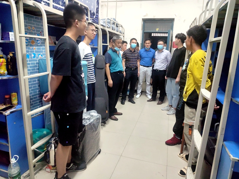 在走访过程中,简炜一一询问了新生入校后的感受和有无需要解决的问题,“学校的环境还适应吗?”、“生活用品准备齐全了吗?”、“同学之间要团结互助,共同营造良好的学习生活氛围;要做好学习规划,勤奋学习,不负韶华;要防范电信诈骗,做好常态化疫情防控......”。简炜和蔼可亲的态度感染了每个同学,同学们积极主动与领导和老师交流,寝室里洋溢着师生间融融情谊。
