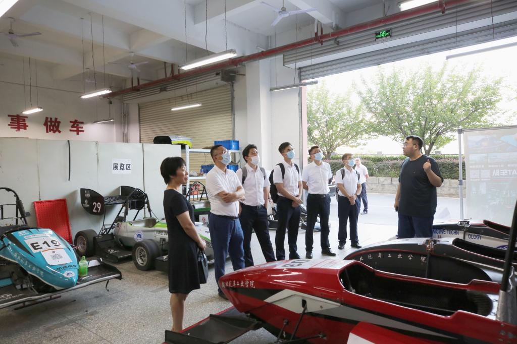 在张文学、张红霞的陪同下,吕恒绪一行参观了校史馆、国家级制造装备数字化分中心,东风HUAT车队及汽车材料研发平台。