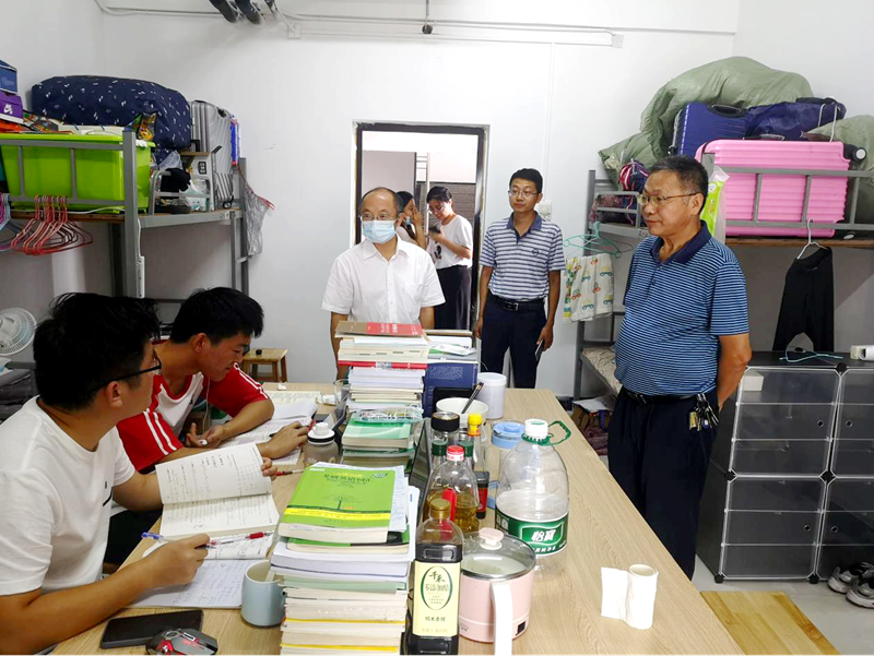 在基地主任郭都玺、副主任周恩德等陪同下,张友兵先后察看了学生宿舍、教室及考研自习室。张友兵每进入一间学生宿舍都向同学们热情地问好、亲切交流,一一询问大家对基地的生活是否适应,学习生活安排如何,并勉励学生要克服生活上的困难,提醒同学们注意寝室卫生问题,营造良好的学习氛围。