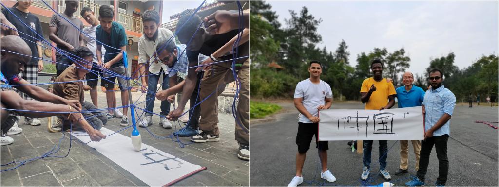 “赏月度中秋,赋诗寄情思”,留学生们用毛笔齐心协力在宣纸上写下“中国”和“中秋节”,以表达共度中秋的喜悦,汉语能力也进一步提高。