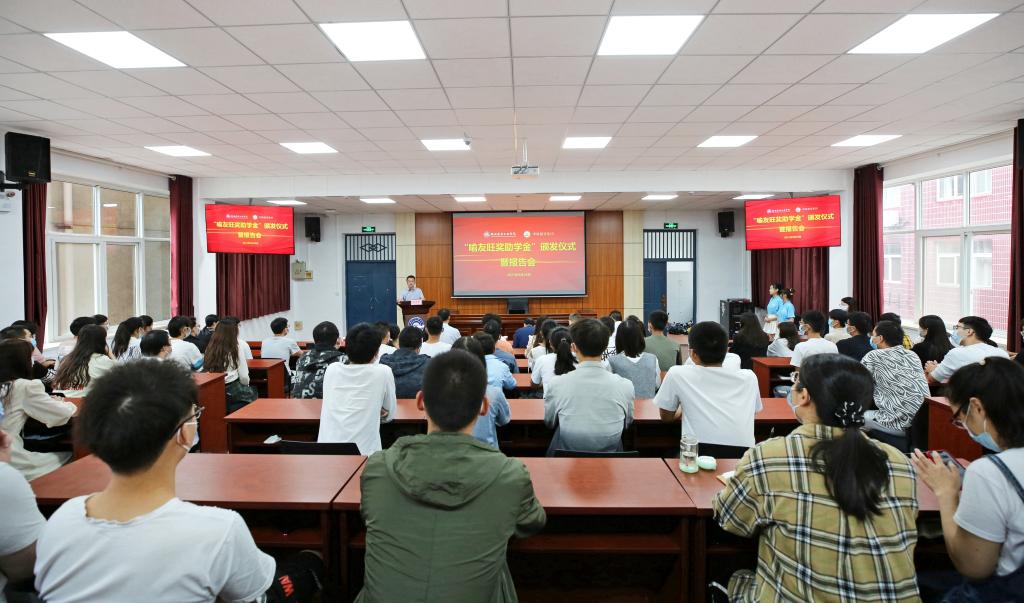 本网讯(文 周炼/图 广娟)9月28日上午,“喻友旺奖助学金”颁发仪式暨报告会在beat3653325报告厅隆重举行。“湖北省首届十大公益慈善之星”、中欣建设集团有限公司董事长喻友旺,校党委副书记李涛,长江日报记者刘丰,校宣传部部长计毅波,校合作发展处处长姚海峰,学工部部长陶伟,副部长倪凰,各学院资助工作专职辅导员以及100余名受助学生代表出席颁奖仪式。仪式由学工部部长陶伟主持。