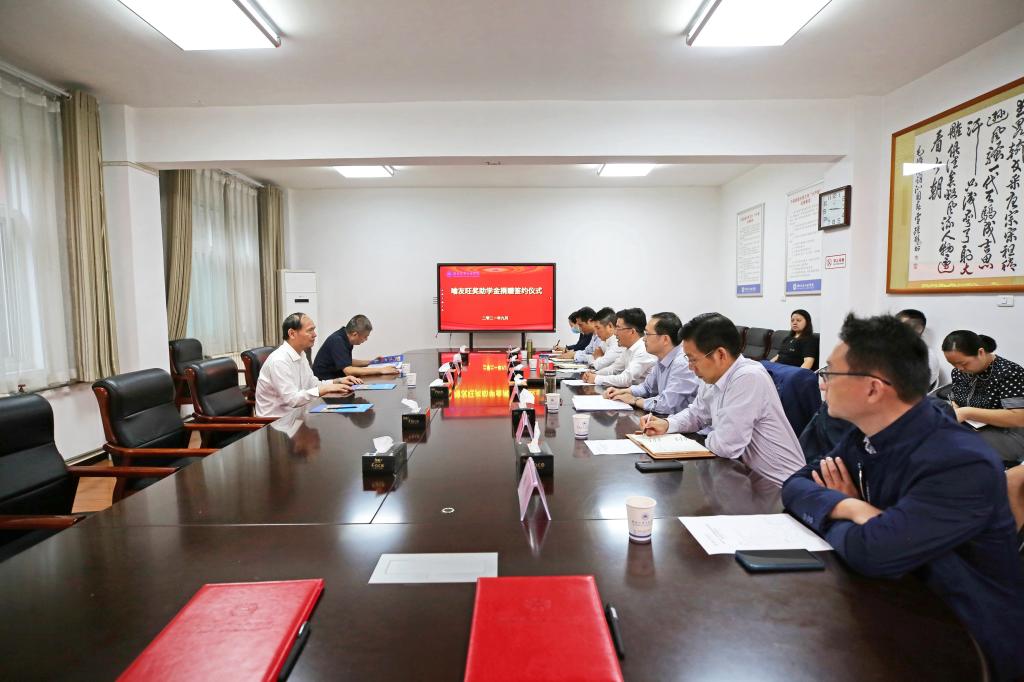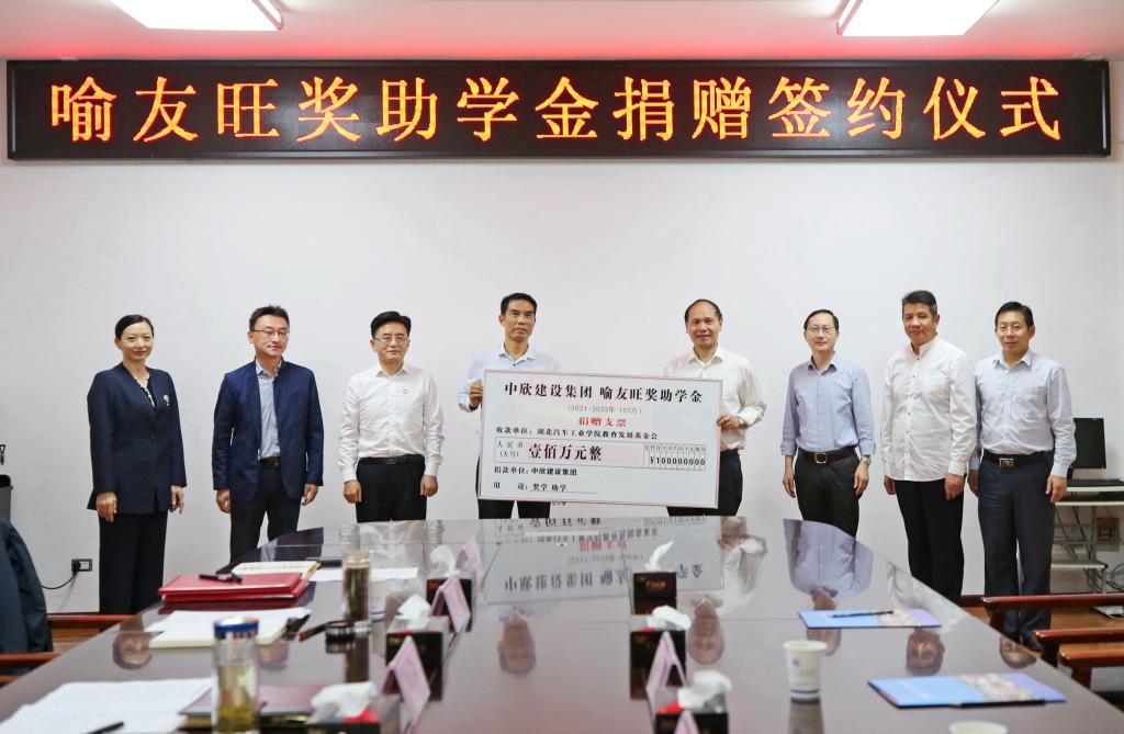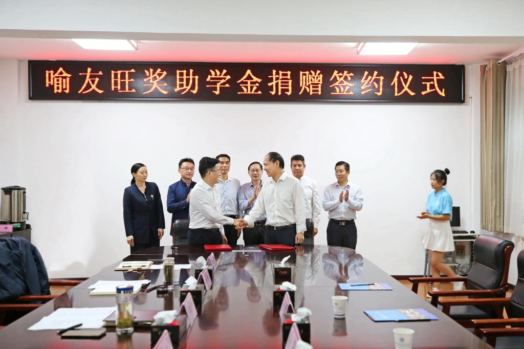中欣建设集团董事长喻友旺和beat365在线唯一官网基金会签订社会捐赠协议,张文学代表学校基金会接受捐赠。
