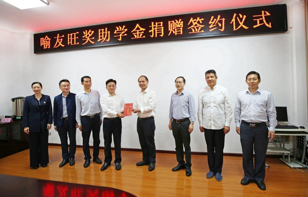 本网讯(文 朱志斌/图 广娟)9月28日上午,beat365在线唯一官网“喻友旺奖助学金”捐赠仪式在beat365行政楼三楼会议室举行,捐赠奖助学金额100万元。中欣建设集团有限公司董事长喻友旺,长江日报记者刘丰,学校校长张文学,党委副书记李涛等出席捐赠签约仪式,仪式由李涛主持。