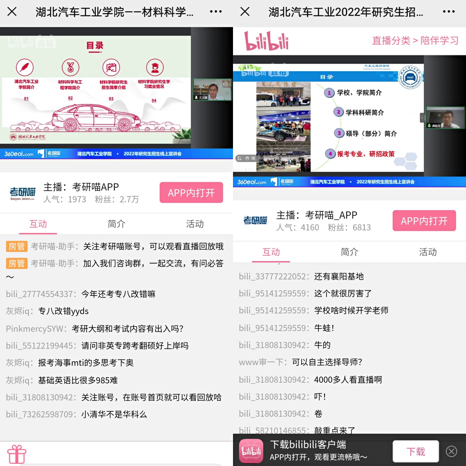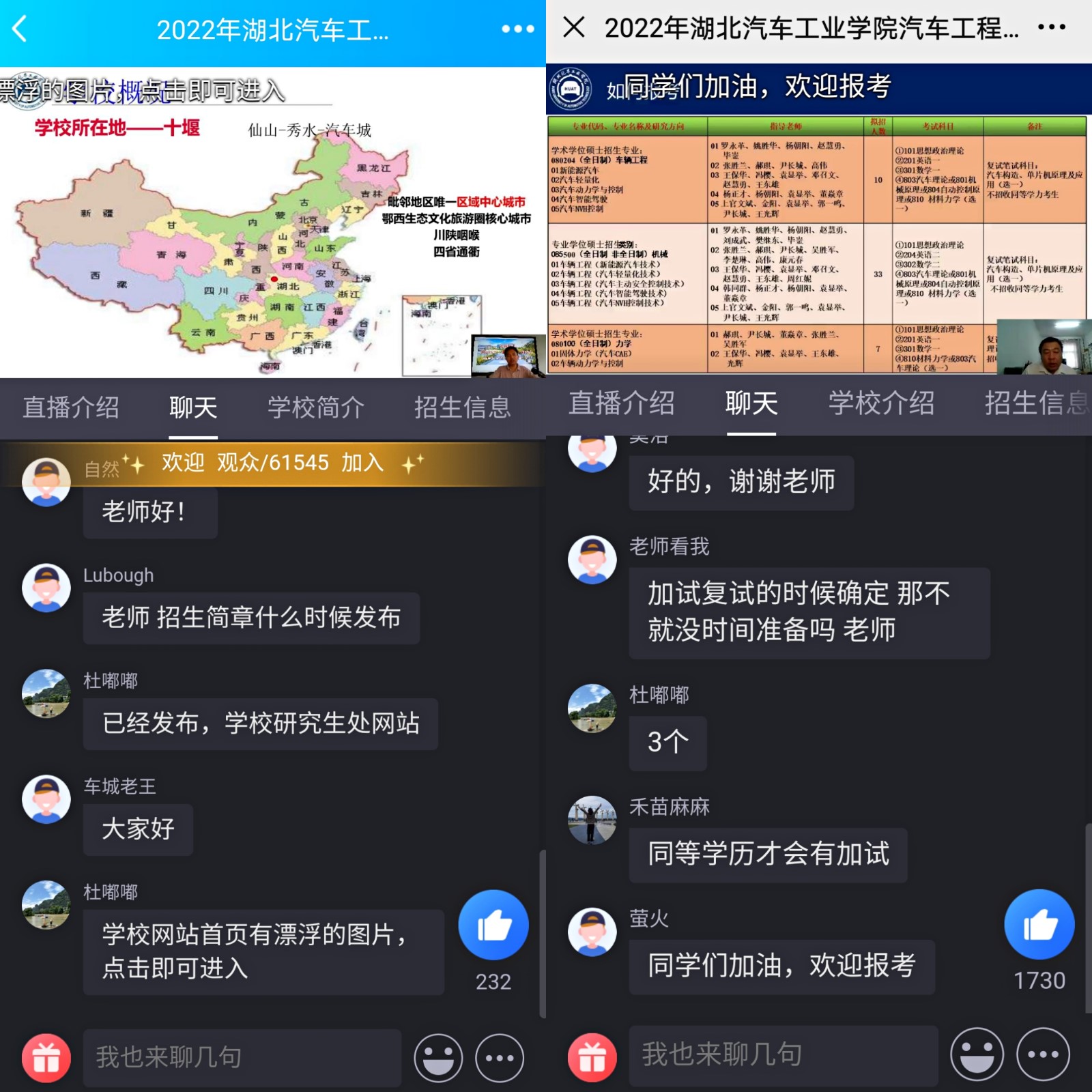 创新宣传手段,聚集优质生源。结合疫情情况和考生特点,研究生处立足“三精准”(目标生源精准定位、宣传内容精准投放、宣传过程精准把控),开展系列线上宣传活动。7月至9月,面向全国优质生源,研究生处相关负责人及7个学院领导、研究生导师进入直播间开展为期14场的”研招线上直播宣讲会”活动,在线为各位考生全面介绍各学院、学科、学位点、人才培养、科研实力、就业前景和奖助学金体系等基本状况,帮助考生更好地了解各学院研究生招生与培养相关信息。直播宣讲活动通过学习强国、支付宝平台、百度APP、今日头条、哔哩哔哩(B站)、考研瞄、新浪微博等多个平台直播,累计观看人次突破4万。直播现场考生踊跃提问,互动热烈,弹幕评论近2000次。