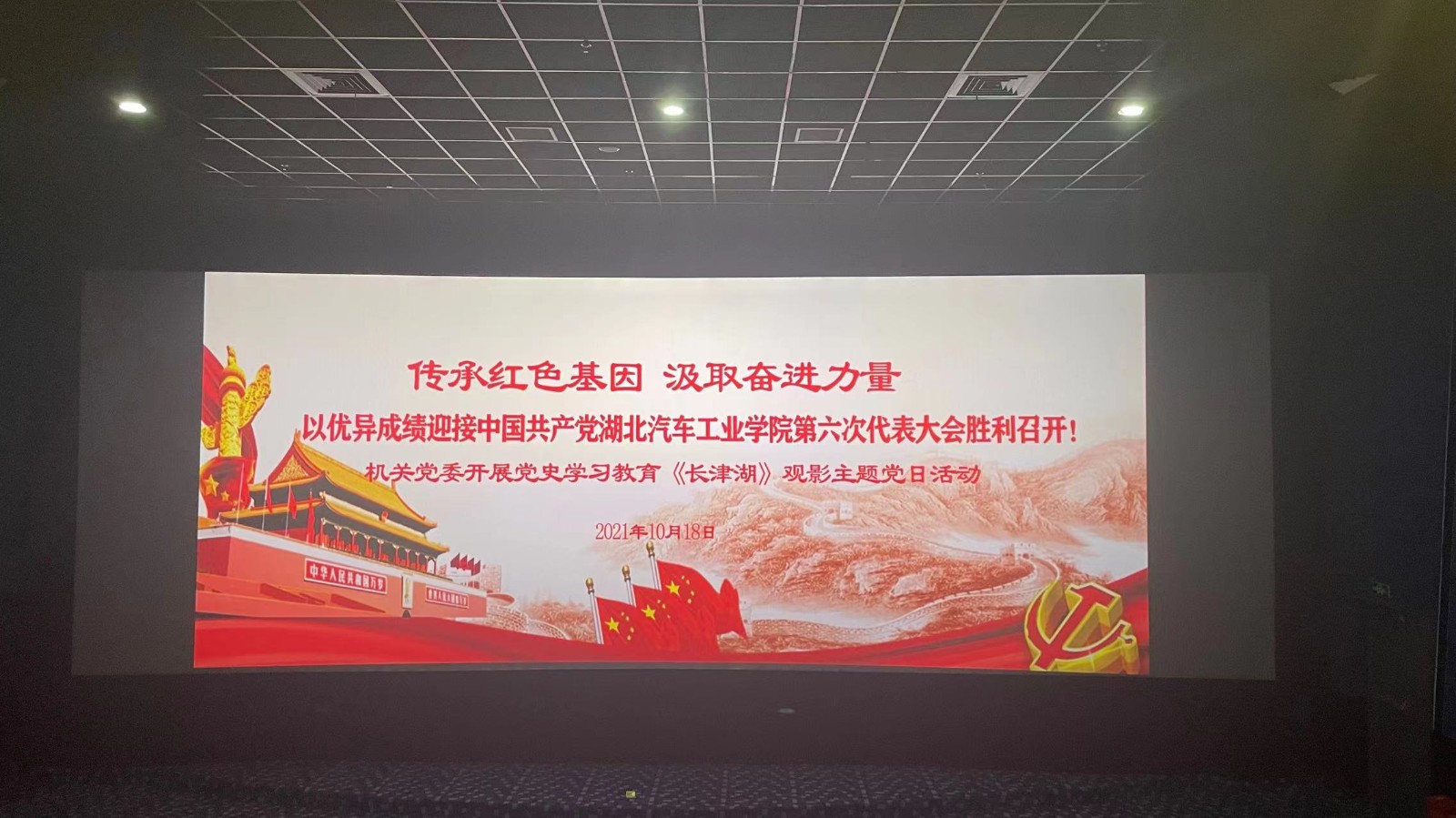 本网讯(文/张华)为深入开展党史学习教育,进一步激发广大党员干部的爱国热情,弘扬爱国主义精神,10月18日晚上,机关分党委组织党员干部开展以“传承红色基因 汲取奋进力量 以优异成绩迎接中国共产党beat365在线唯一官网第六次代表大会”为主题的党史学习教育《长津湖》观影主题党日活动。