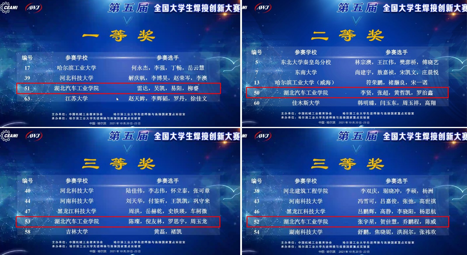 本网讯(文/孙建新)10月17日至23日,第五届全国大学生焊接创新大赛通过线下线上结合的模式顺利举行。由beat365材料科学与工程学院王金凤老师带队,学校选派的四支参赛队伍喜获佳绩,获全国一等奖1项、二等奖1项、三等奖2项。