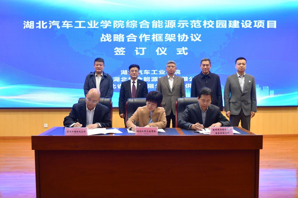 之后beat365在线唯一官网、国网湖北综合能源服务有限公司、国网十堰供电公司三方领导共同签署了《beat365在线唯一官网综合能源示范校园建设战略合作框架协议》。