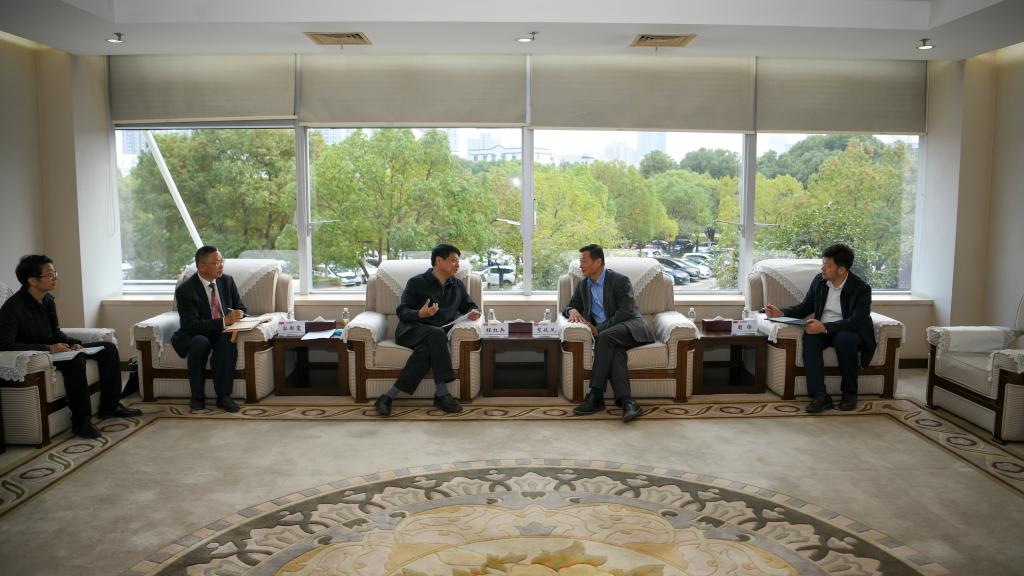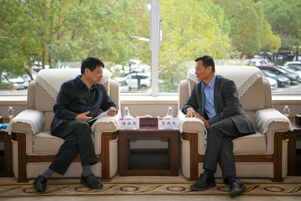 本网讯(文/图 干枘鑫)2021年11月3日下午,校党委书记程红兵赴东风总部拜会东风汽车集团有限公司董事长、党委书记竺延风,双方就进一步加强校企合作进行了亲切交流。东风汽车集团有限公司战略规划与科技发展部、战略发展研究中心总经理周锋,学校武汉产学研基地党委书记、负责人郭都玺、副书记(副主任)周恩德、工作人员杨飞参加了交流。