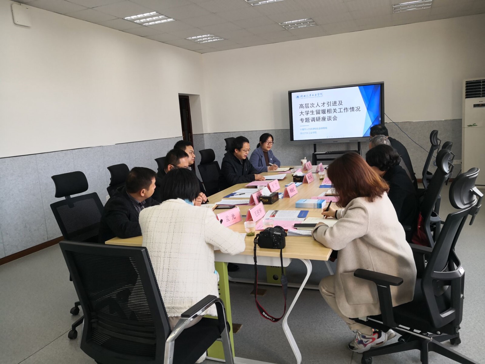 在高层次人才引进及大学生留堰相关工作情况专题调研座谈会上,高刃提出“近年来,十堰市大学生的留堰率占本校应届毕业生的34.52%;2020年,已经下滑到16%。如何留住人才,是迫在眉睫的事。”座谈会上,人事处处长刘红胜就学校人才公寓配置、人才配偶工作、子女入学、稳定人才的专项资金支持以及人社政策进校园的长线机制等提出一系列问题,市人才中心负责人现场给予解答。招就处处长李新伟就beat365毕业生留堰过程中存在的问题与市人才中心负责人进行了充分交流。