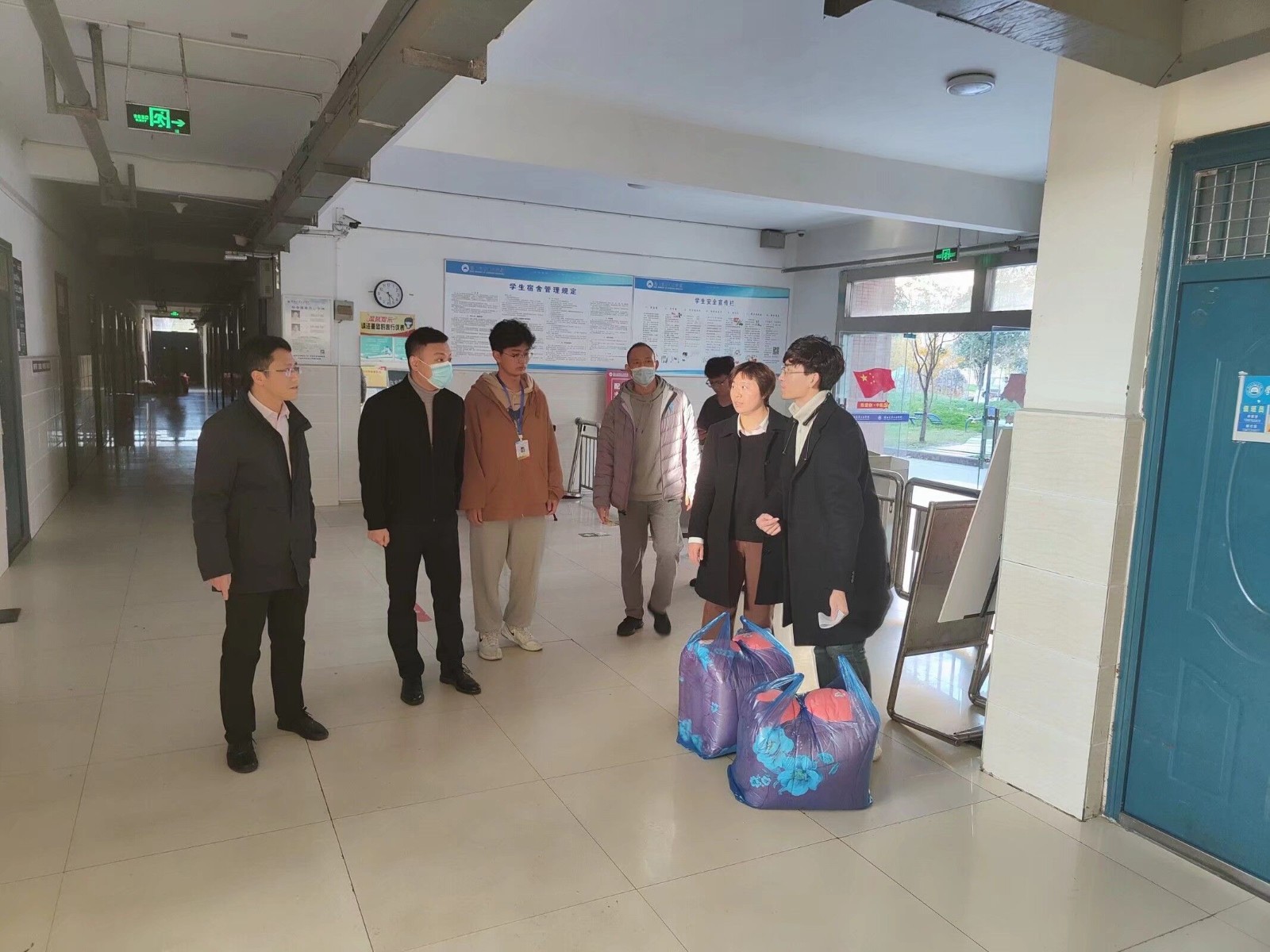 领导老师们走访了多间宿舍,为学生们送去了崭新的棉被,同时与学生们进行了交流,了解同学们的学习、生活情况,叮嘱学生们一定要注意保暖,预防感冒,防范疫情,积极参加课外活动,多运动多锻炼,并在临近期末认真复习,做好充足的备考准备。