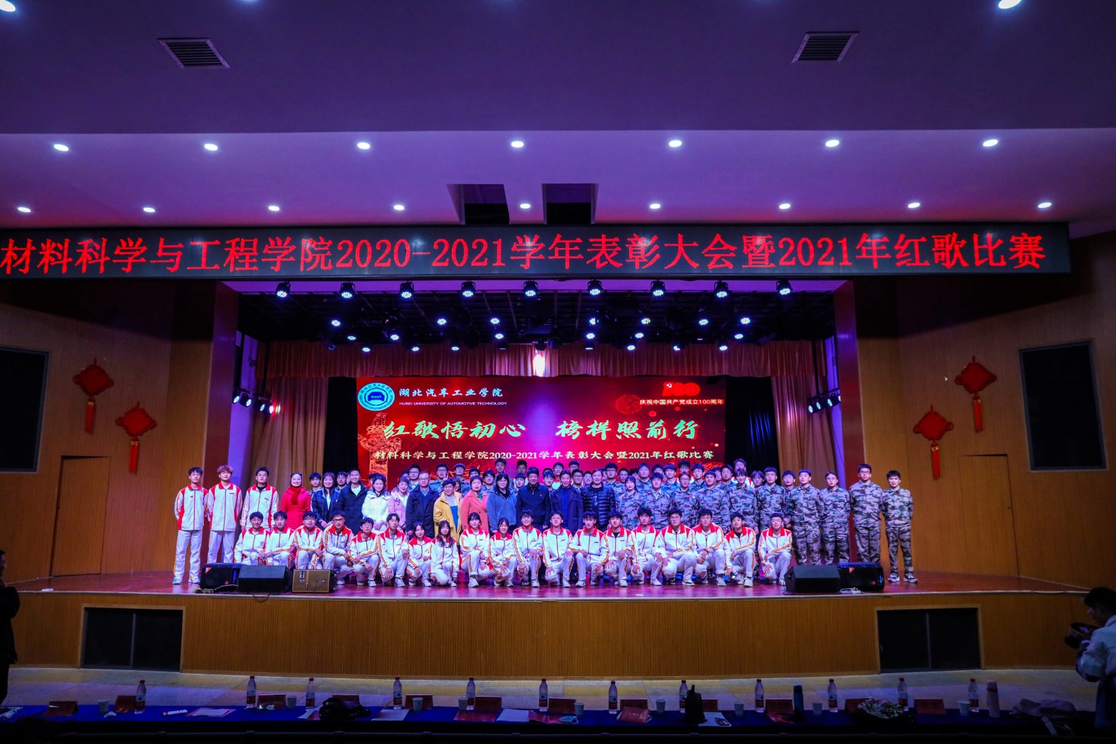 本网讯(文/李诗)为增强学院、学校凝聚力,丰富校园文化生活,2021年12月5日材料学院在大礼堂顺利召开2020-2021学年表彰大会暨2021年红歌比赛。beat365在线唯一官网党委书记程红兵、材料学院院长张元好、校学工部副部长兼团委副书记倪凰、材料学院副院长王天国、副院长刘峰、分党委副书记崔海英、校团委文化艺术中心主任董煌煌、材料学院各系主任、各教研室老师、学工部办辅导员、班主任老师,以及材料学院各年级学生参加了此次活动。