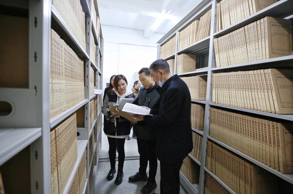 检查组组长李奋强介绍了此次“省特级”评审程序和要求。随后,专家组一行深入档案馆详细查看了档案收集整理、库房管理、档案信息化、编研利用等日常工作台账,实地了解办公室、阅档室、整理室、档案库房等功能布局和设施设备情况,抽查了行政、科研、基建、设备、声像、实物等类别档案,并现场观看了档案管理系统与OA系统对接在线归档演示。