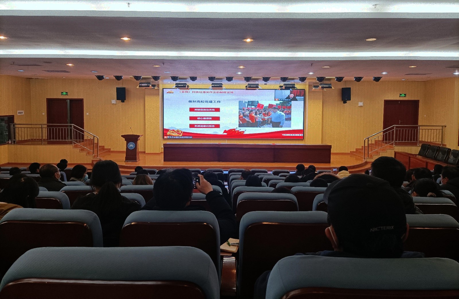 本网讯(文、图/周彬)为深入贯彻落实《中国共产党普通高等学校基层组织工作条例》(以下简称《条例》),不断强化学校基层党组织政治功能,全面提升组织力,12月11日,学校在逸夫图书馆报告厅举办《中国共产党普通高等学校基层组织工作条例》专题培训,特邀《条例》起草组成员、省委教育工委组织处处长、一级调研员乔志强作专题辅导,学校全体中层干部、党支部书记及辅导员齐聚逸夫图书馆报告厅,利用腾讯会议集中参加线上培训。