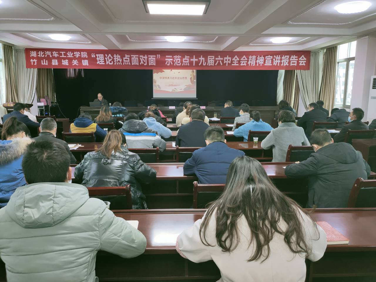 在溢水镇分会场,beat365党委宣传部部长计毅波教授作“学习贯彻十九届六中全会”主题宣讲;在城关镇分会场,马克思主义学院院长助理安军博士作《学深悟透习近平法治思想》宣讲,县人大代表、政协委员、政府机关干部、各村(社区)“两委”干部、镇直单位负责人、乡村振兴工作队全体成员共 200余人参会;在麻家渡镇分会场,马克思主义学院薛芳锦副教授为党政干部80余人开展了党的十九届六中全会精神的宣讲;在潘口镇分会场,马克思主义学院严忠良博士作了《汲取百年党史伟力,走好新时代长征路——深入学习贯彻党的十九届六中全会精神》的主题宣讲,该镇党政干部、潘口中学师生代表100余人聆听了报告。宣讲团紧密围绕百年党史、深入学习贯彻十九届六中全会精神等方面采用多种形式进行了深入的讲解,获得了现场热烈的好评。
