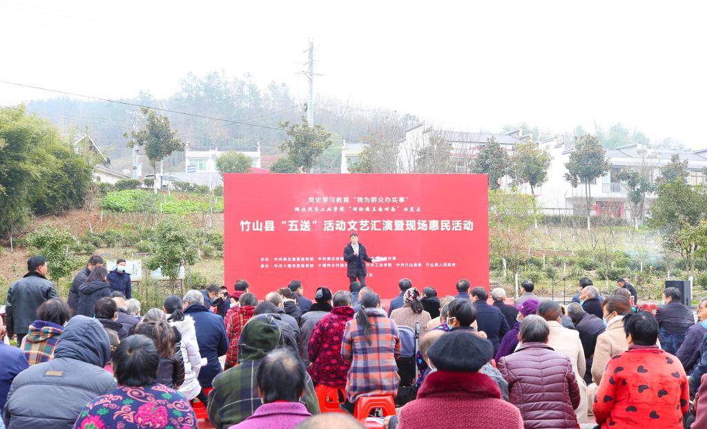 仪式结束后,beat365大学生艺术团与竹山县高腔剧团带来了朗诵剧《施洋—劳动者的律师》、快板《科普引领助乡村》、花鼓船歌《歌唱六中全会精神 欢乐送百姓》等精彩纷呈的“送文化”惠民文艺演出节目,专家组在现场开展《民法典》进乡村,《刑法》(第十一次修正案)亮点解读,茶叶栽培技术与茶文化推广,竹山县农产品“三品一标”打造行动等惠民活动。