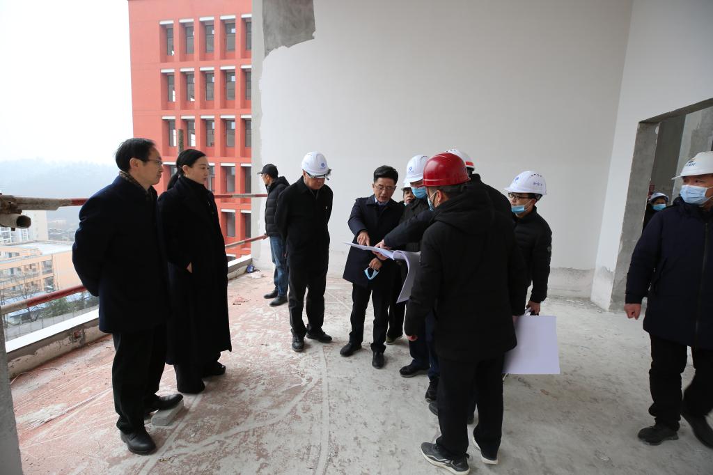 本网讯(文/图 邓玉洁)1月14日上午,校党委书记程红兵、校长张文学、党委副书记李涛、副校长张红霞、工会主席陈海峰一行携校办、宣传部、建管处、资产处、教务处、科技处等部门负责人及有关人员,实地视察学校汽车产业实验实训教学示范中心大楼建设情况。