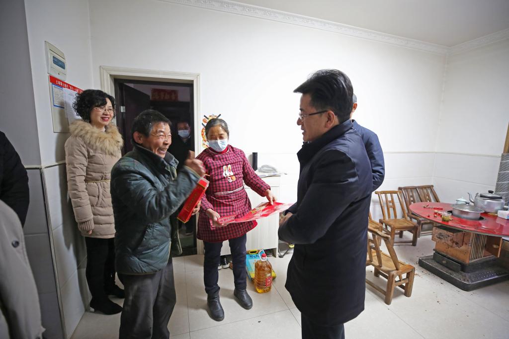 张文学一行还带着慰问品来到孤山村监测户王太志、土城村脱贫户龚士贵等人以及驻村工作队家中,与村民和工作队人员亲切交谈,并送上春联和新春祝福。