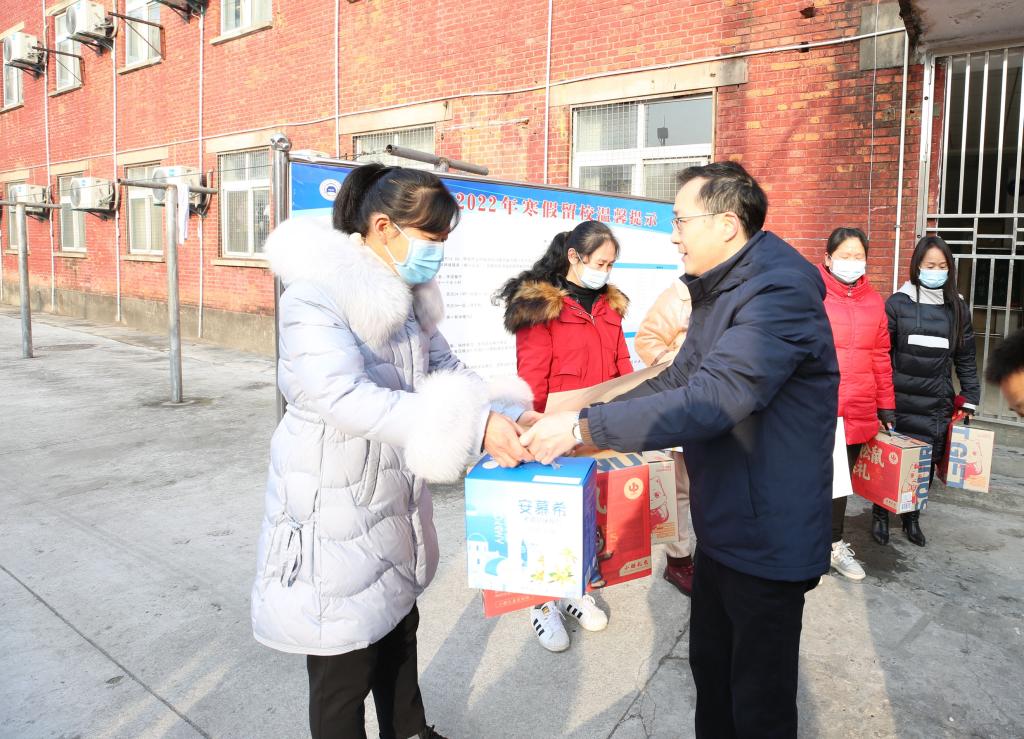 本网讯(文/图 邓玉洁)金牛辞旧岁,瑞虎迎春来。2月1日大年初一早上9点,受党委书记程红兵、校长张文学委托,校党委副书记李涛代表学校看望慰问坚守一线,为保障春节及寒假期间学校安全稳定的工作人员,并送上新春祝福和慰问品,让每一位值班人员感受到学校的关怀和温暖。学校办公室、工会、学工部、保卫处、校园建设与管理处等部门相关人员陪同慰问。
