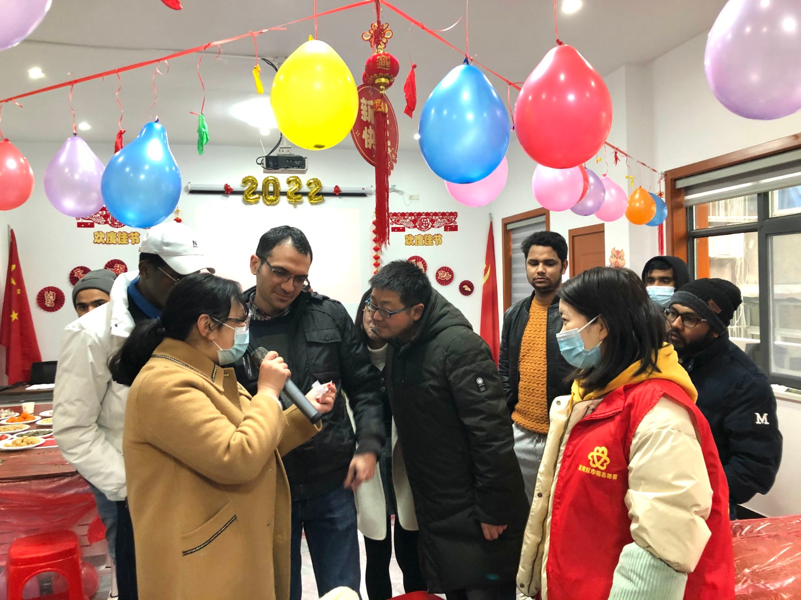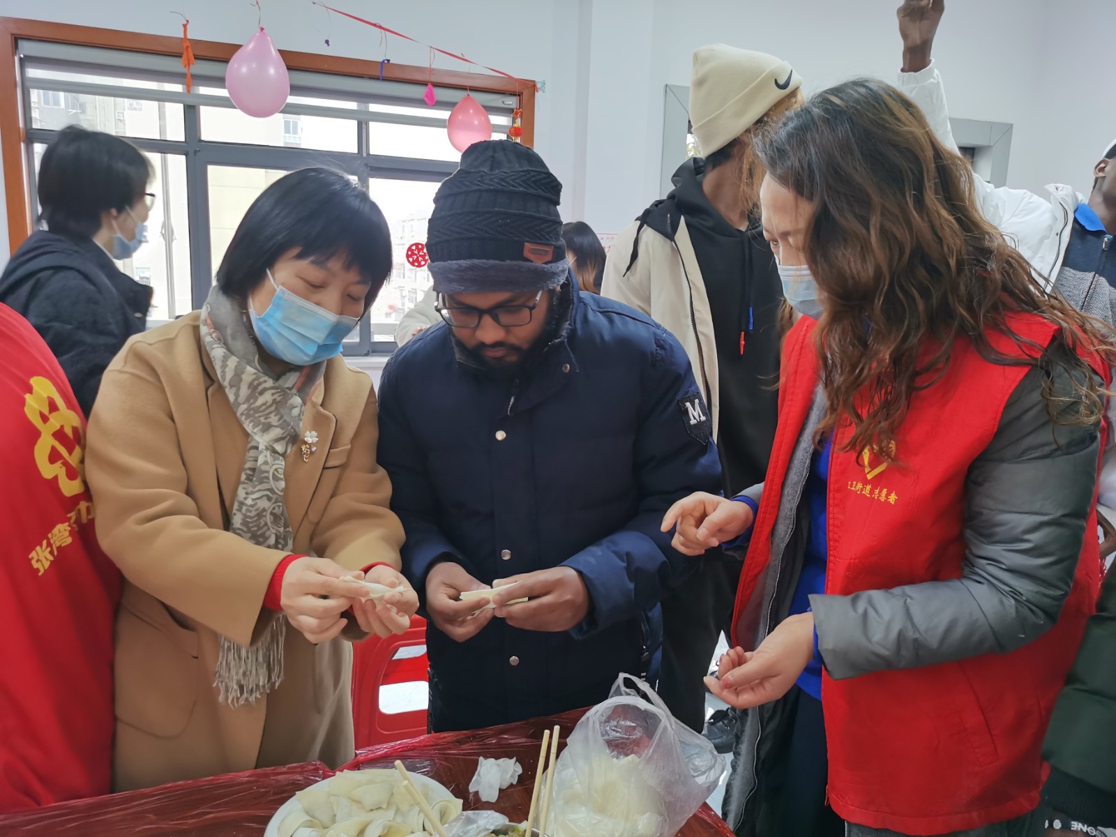 本网讯(文/图 张永红、苏子波)火树银花上元夜,正是万家团圆时。农历正月十四日上午,虎年元宵佳节即将到来之际,张湾区红卫街办周家沟社区联合beat365在线唯一官网组织寒假期间留校的外籍师生,开展“元宵佳节喜相逢 欢聚一堂庆虎年”的庆祝活动,让外籍师生更好地了解、感受中国元宵佳节的习俗和文化。beat365在线唯一官网副校长张红霞,校办主任、机关分党委书记王文山,学工部部长陶伟,党建专员王洪涛,红卫街办纪委书记贵磊,周家沟社区党委书记汪安丽,国际合作交流处副处长苏子波以及近20名外籍师生参加了本次活动。